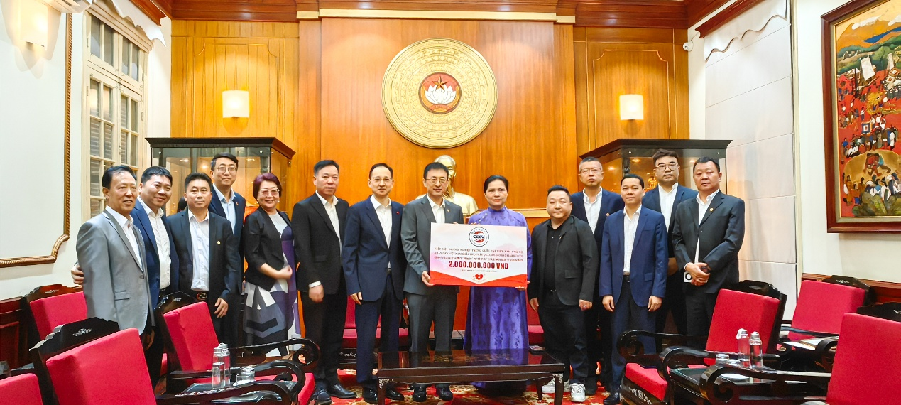 2025年10月21日上午,在中国驻越南大使馆王群临时代办的带领下,越南中国总商会通过越南祖国阵线中央委员会将第一批筹集的20亿越南盾善款捐赠给近期遭受台风影响的越南受灾群众,以实际行动支持灾后救助与重建工作,充分彰显驻越中资企业履行社会责任、践行中越传统友谊的坚定担当。