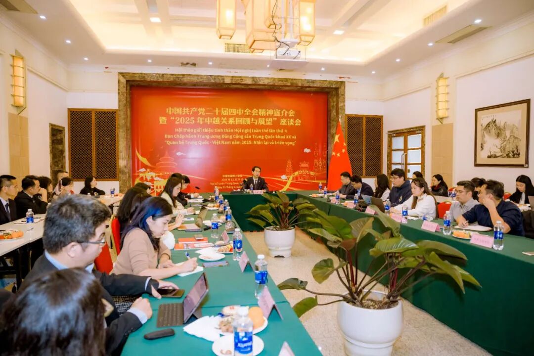 12月29日,驻越南使馆举办二十届四中全会精神宣介会暨2025年中越关系回顾与展望座谈会,何炜大使出席并接受中越主流媒体联合采访。