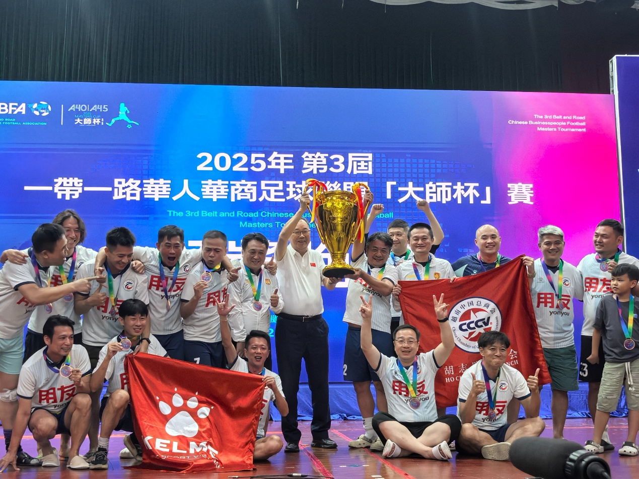2025年12月6日至7日,2025年第3届“一带一路”华人华商足球联盟“大师杯”赛在老挝首都万象成功举办。本届赛事共吸引来自“一带一路”沿线及相关国家和地区的21支队伍参赛。越南中国总商会高度重视此项国际交流赛事,组织派出3支队伍代表驻越中资企业参赛并取得良好成绩。其中,越南中国总商会胡志明飞越足球队凭借稳定发挥和默契配合最终夺得杯赛冠军;越南中国总商会足球队和北宁企业联队分别获得杯赛第七名和第八名。