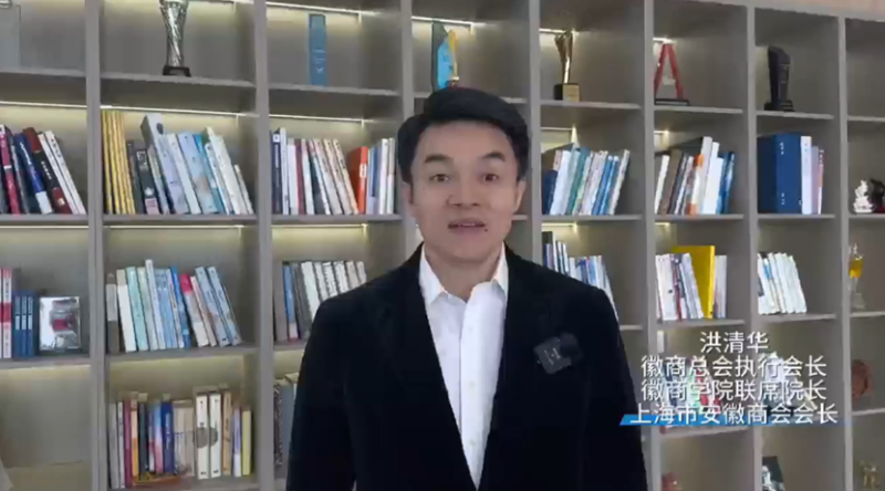徽商总会执行会长洪清华在祝贺视频中向全体嘉宾和企业家致以新年祝福