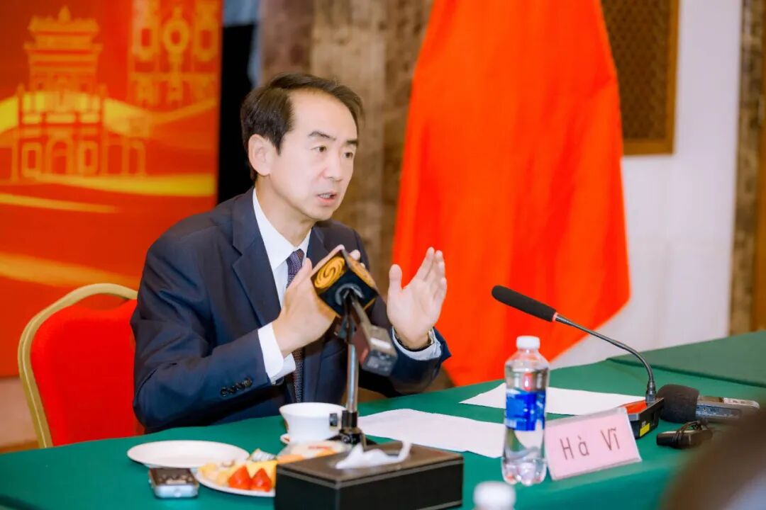 12月29日,驻越南使馆举办二十届四中全会精神宣介会暨2025年中越关系回顾与展望座谈会,何炜大使出席并接受中越主流媒体联合采访。